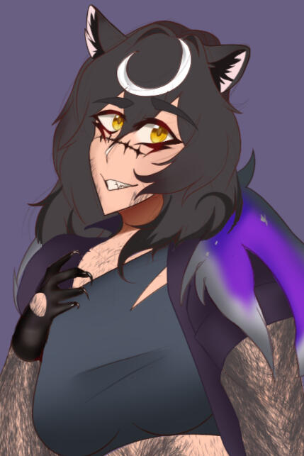 Shaw | she/her | wuthering waves | dating Phrolova | tags: [🦝🌕] chaotic lycan | element: havoc